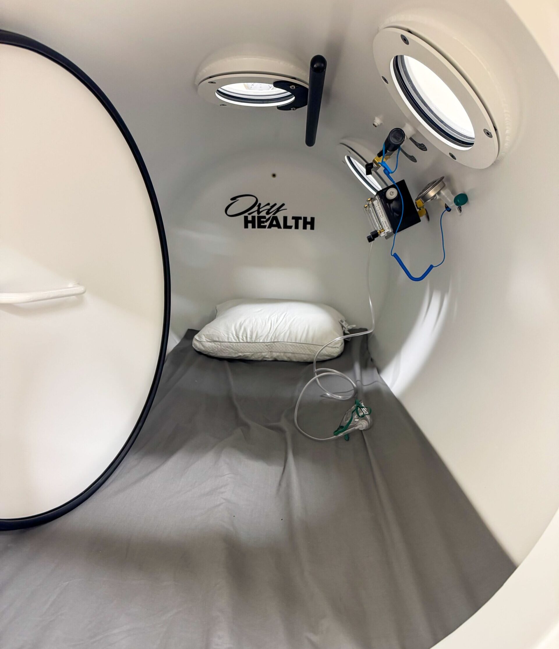Our clinic features the Fortius 420 Chamber, a hard-shell chamber, which operates at up to 3.0 ATA (atmospheres absolute) pressure and has a 42″ diameter for comfort. Our HBOT chambers provide safe, effective, and controlled oxygen therapy sessions. Our team is specially trained and will be with you every step of the way to ensure your sessions go smoothly.